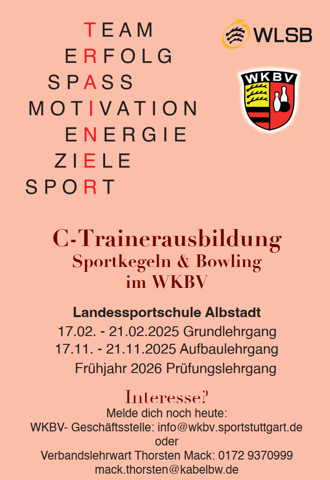 Auch 2025 biete ich wieder Trainerweiterbildungen an. Die erste in diesem Jahr soll sich mit zwei Themen befassen. Das erste Thema ist nicht nur beim Bowling nützlich. Ich freue mich, mit Bettina Reinke eine Referentin zu haben, die bei diesem Thema "Mentale Stärke" voll im Saft steht.